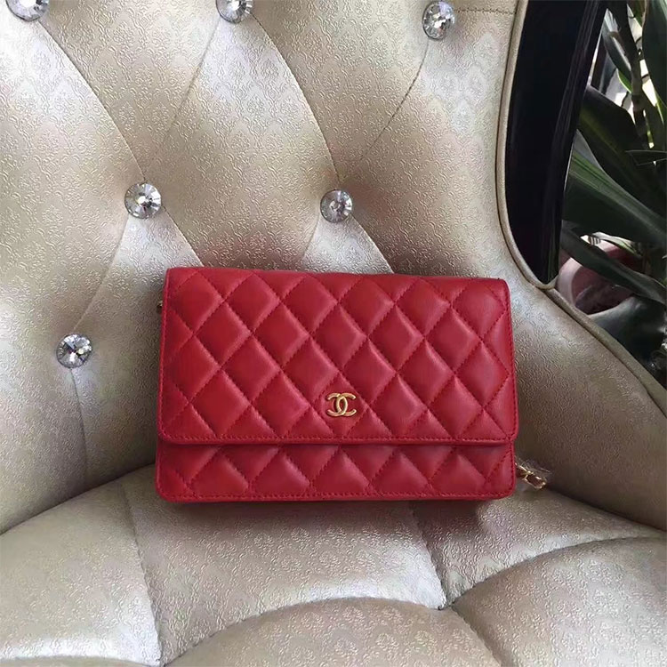 2017 Chanel WOC A33814 Red Original Lambskin Leather Mini Flap Bag Gold