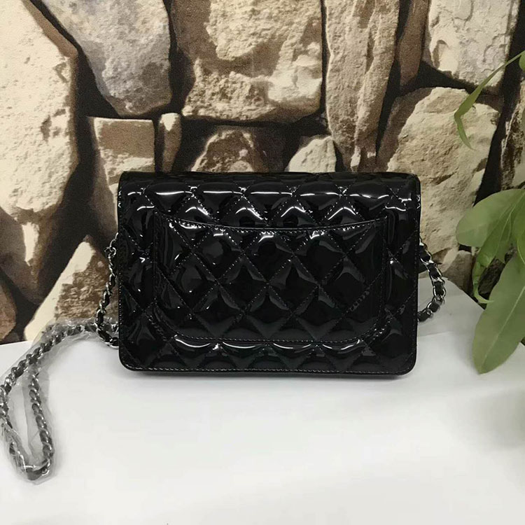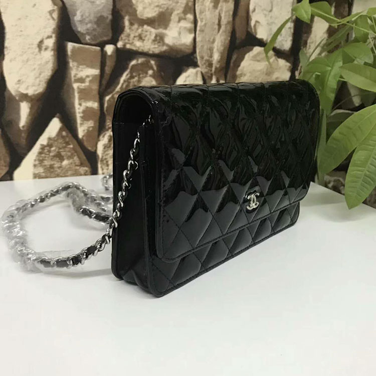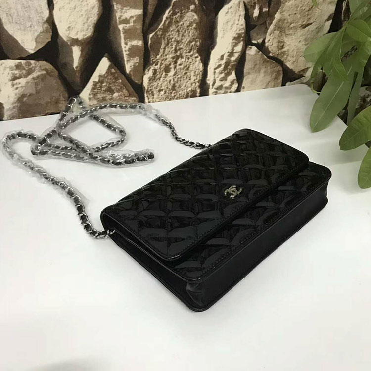 2017 Chanel WOC A33815 Black Original Patent Leather Flap Shoulder Bags Silver