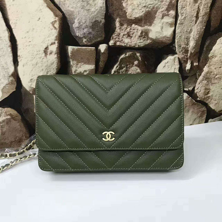 2017 Chanel WOC A33815 Black Original Sheepskin Leather Flap Shoulder Bags Gold