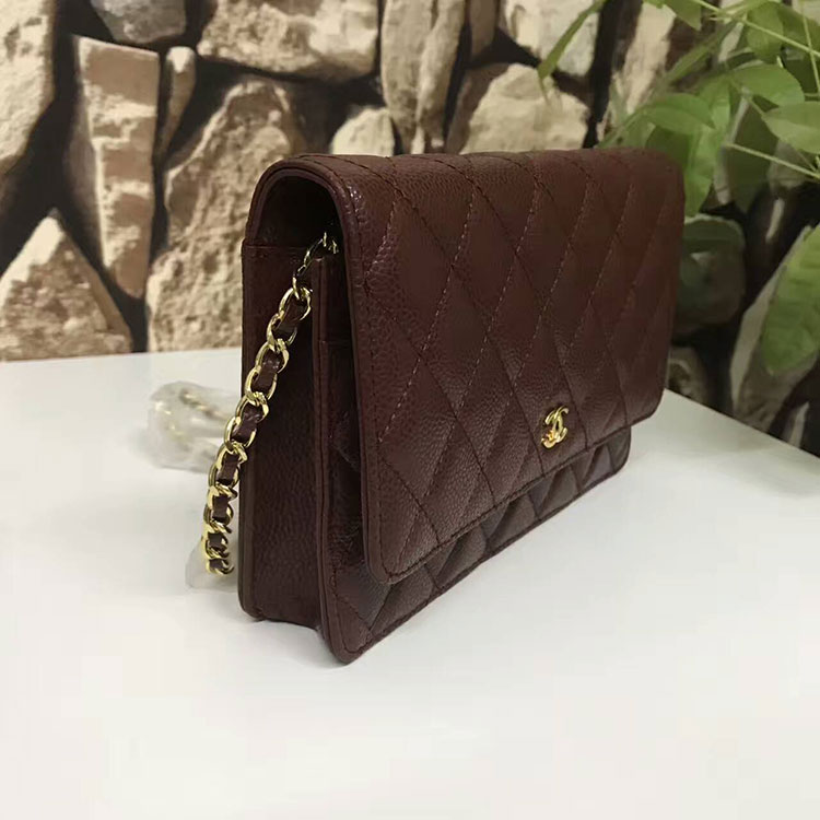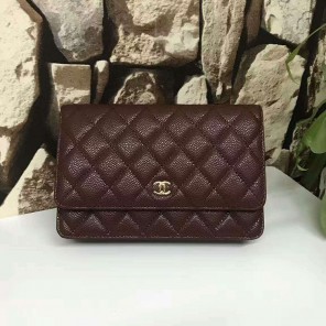 2017 Chanel WOC A33815 Burgundy Original Caviar Leather Flap Shoulder Bags Gold
