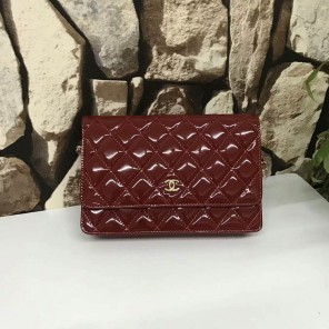 2017 Chanel WOC A33815 Burgundy Original Patent Leather Flap Shoulder Bags Gold