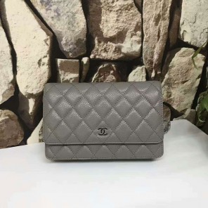 2017 Chanel WOC A33815 Grey Original Caviar Leather Flap Shoulder Bags Silver