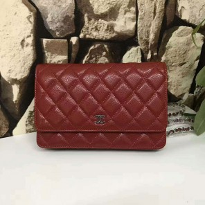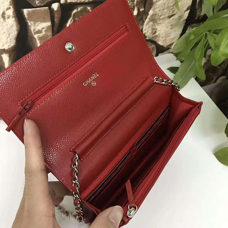 2017 Chanel WOC A33815 Red Original Caviar Leather Flap Shoulder Bags Silver