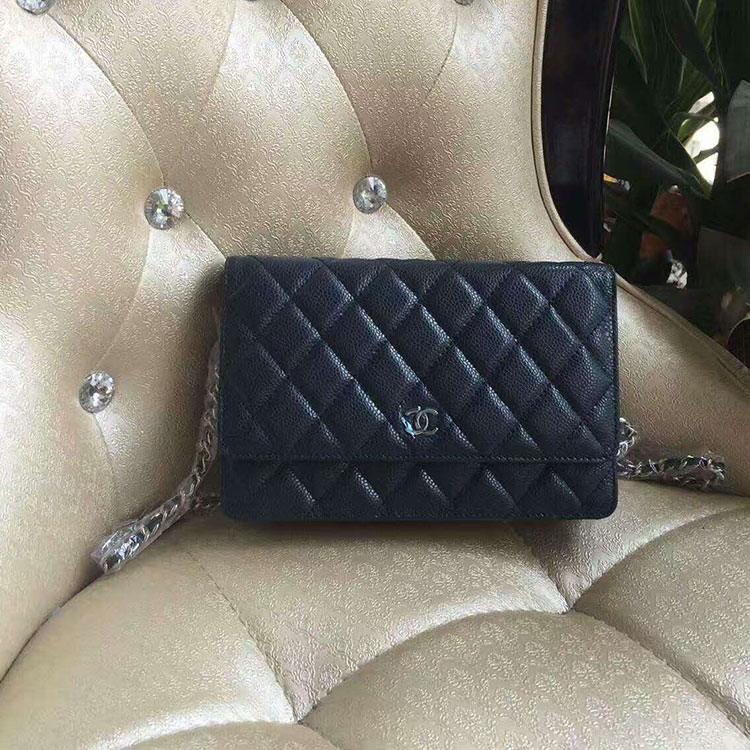 2017 Chanel WOC A33815 Royalblue Original Caviar Leather Flap Shoulder Bags Silver