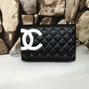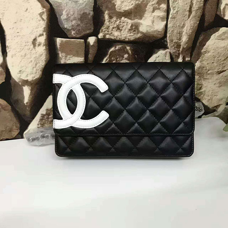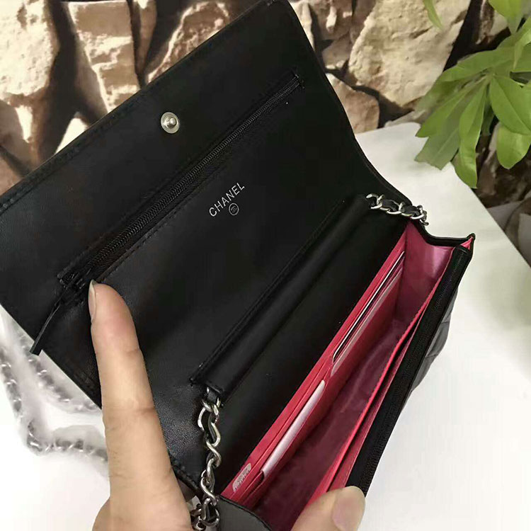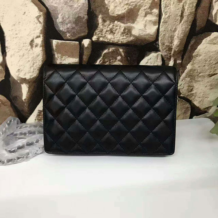 2017 Chanel WOC A46646 Black Original Sheepskin Leather Mini Flap Bag