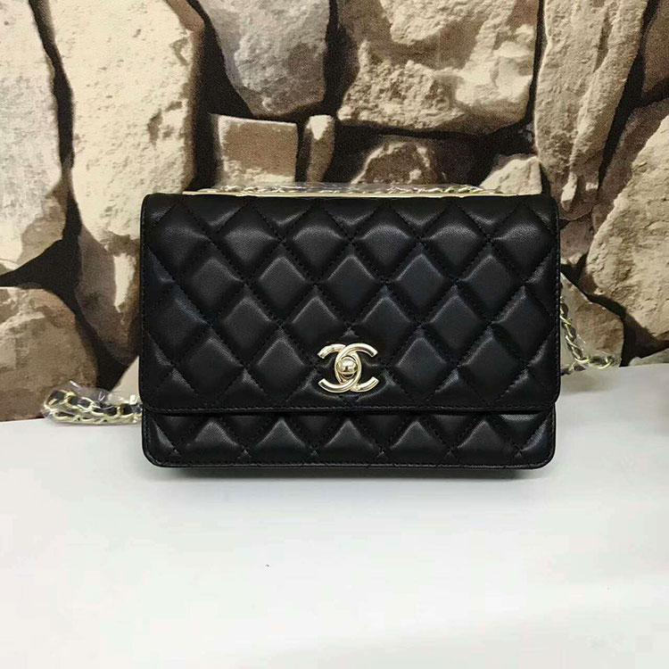 2017 Chanel WOC A80982 Black Original Sheepskin Leather Mini Flap Bag Gold