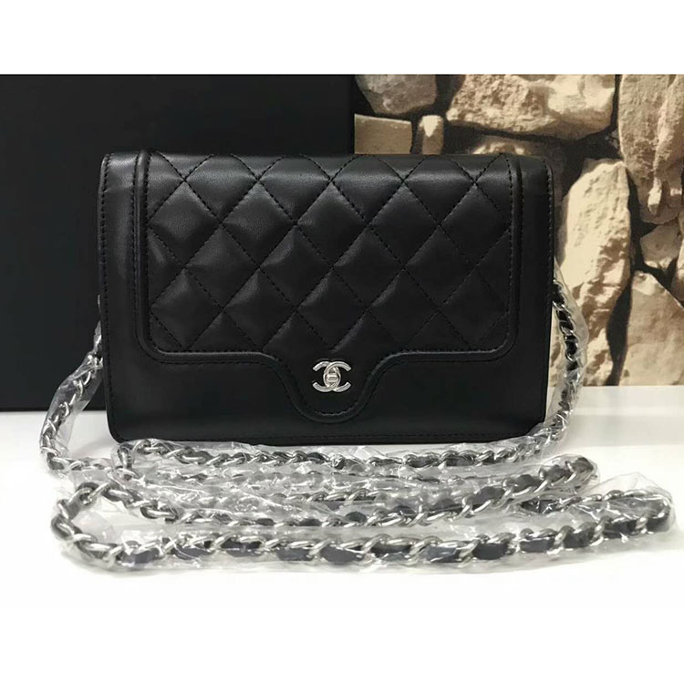 2017 Chanel WOC A84236 Black Original Leather Flap Shoulder Bags Silver