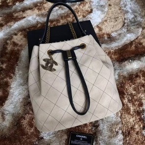 2017 Chanel White Original Nubuck Leather Bucket bag A98151