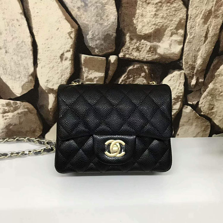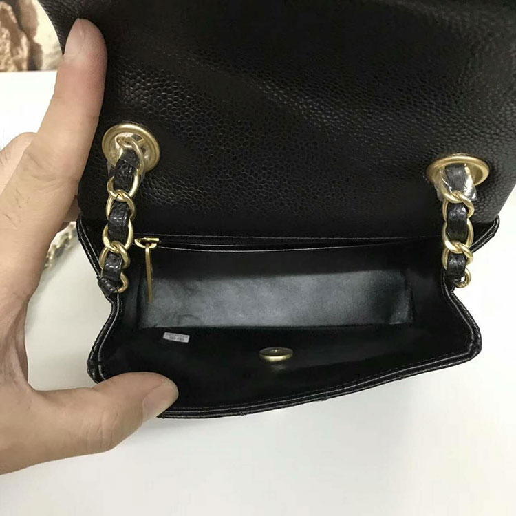 2017 Chanel mini Classic Flap Bag Black Original Caviar leather 1115 Gold