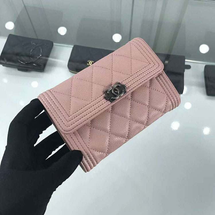 Boy Chanel Tri-fold wallet Come with serial numbers, Chanel authenticity card, Chanel dust bag, Chanel Box and Chanel care booklet.
