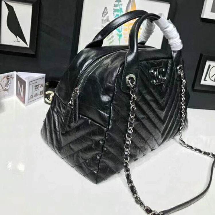 Bowling bag Come with serial numbers, Chanel authenticity card, Chanel dust bag and Chanel care booklet.