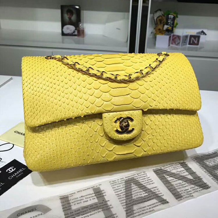 • 2018 Chanel Classic Flap Bag Original Python Leather