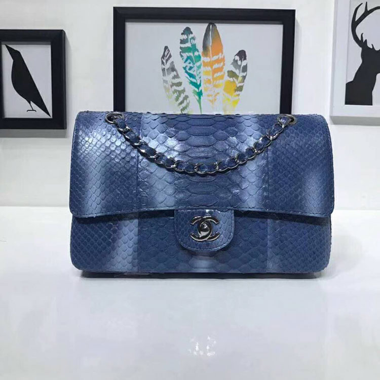 • 2018 Chanel Classic Flap Bag Original Python Leather