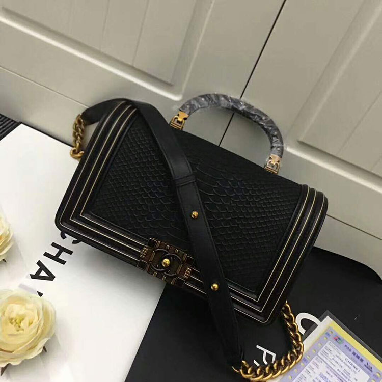 2018 Chanel LeBoy Tote Shoulder Bag Python A67086