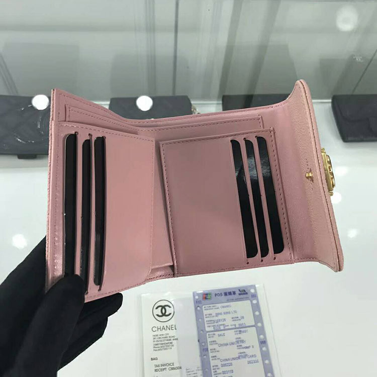 Chanel Tri-Fold Wallets Come with serial numbers, Chanel authenticity card, Chanel dust bag, Chanel Box and Chanel care booklet.