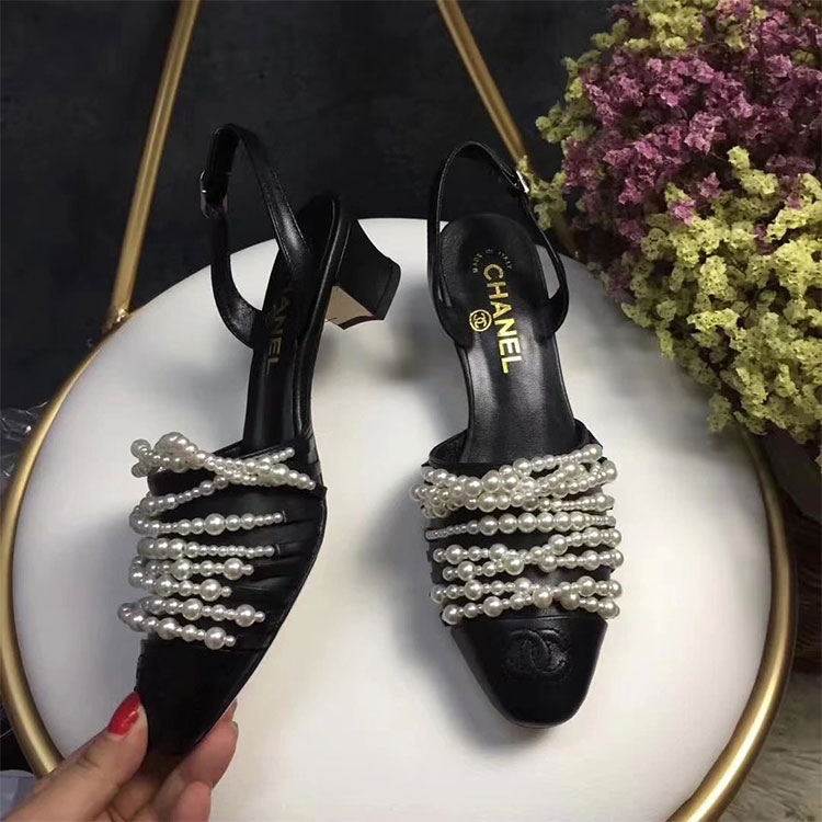 2018 chanle women shoes in Lambskin leather with pearl Heel 5cm