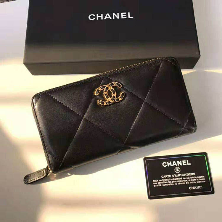 Chanel 19 long zipped wallet Come with serial numbers, Chanel authenticity card, Chanel dust bag, Chanel Box and Chanel care booklet.