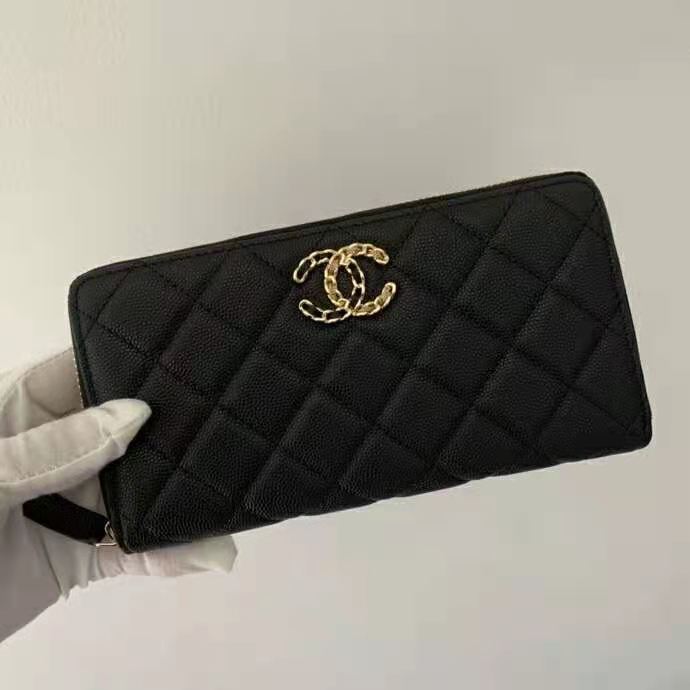 Chanel long zipped wallet Come with serial numbers, Chanel authenticity card, Chanel dust bag, Chanel Box and Chanel care booklet.