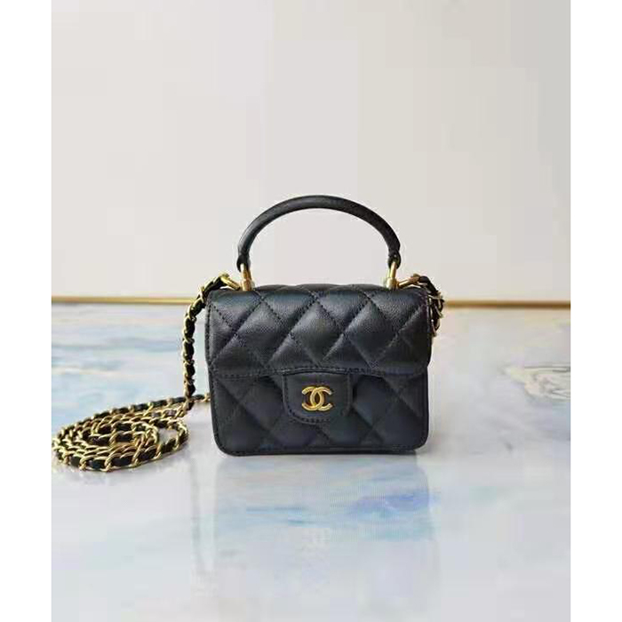 Chanel mini flap bag with top handle Come with serial numbers, Chanel box, Chanel authenticity card, Chanel dust bag, Chanel care booklet.