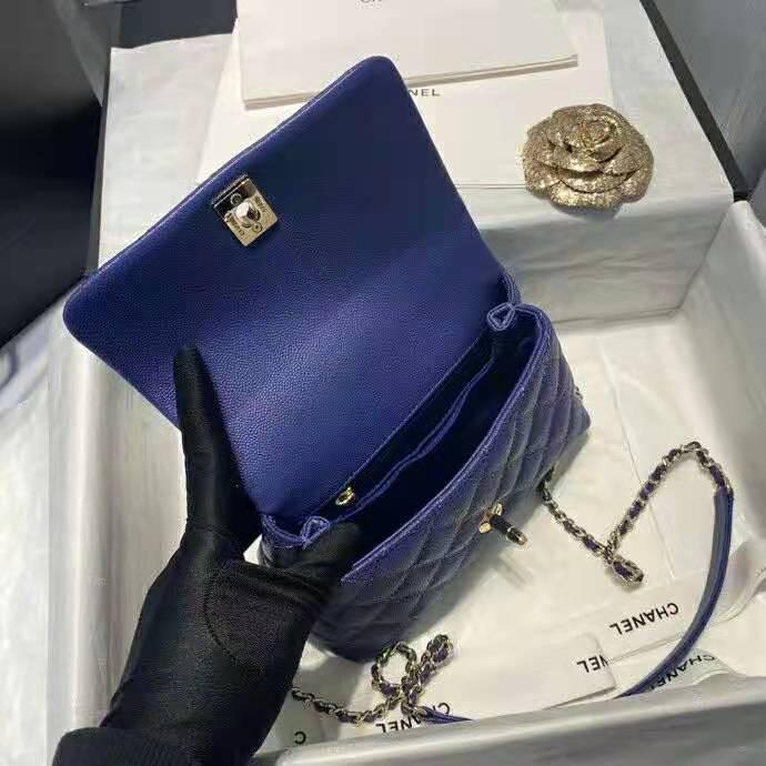Chanel mini flap bag with top handle Come with serial numbers, Chanel authenticity card, Chanel dust bag, Chanel Box and Chanel care booklet.