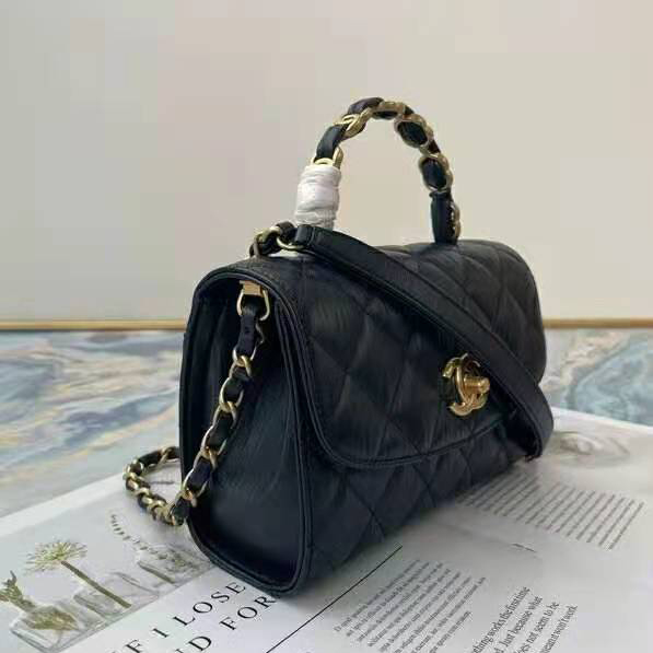 Chanel mini flap bag with top handle Come with serial numbers, Chanel authenticity card, Chanel dust bag and Chanel care booklet.