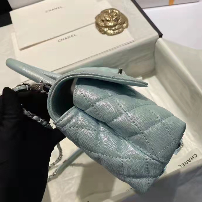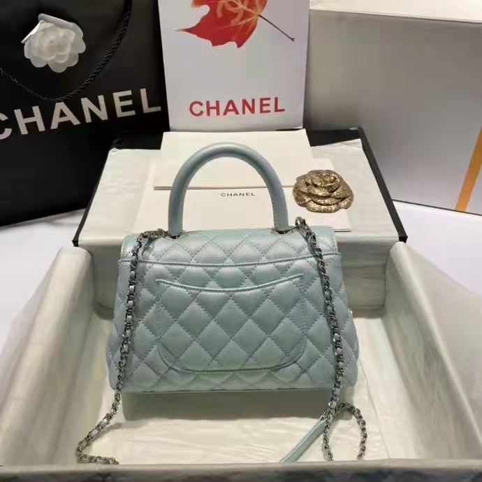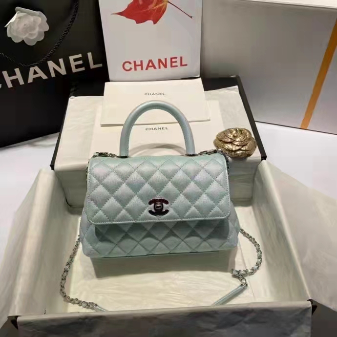 Chanel flap bag with top handle Come with serial numbers, Chanel authenticity card, Chanel dust bag, Chanel Box and Chanel care booklet.