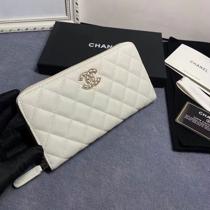 Chanel long zipped wallet Come with serial numbers, Chanel authenticity card, Chanel dust bag, Chanel Box and Chanel care booklet.