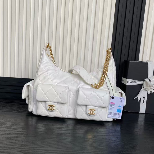 Chanel large hobo bag Come with serial numbers, Chanel authenticity card, Chanel dust bag, and Chanel care booklet.