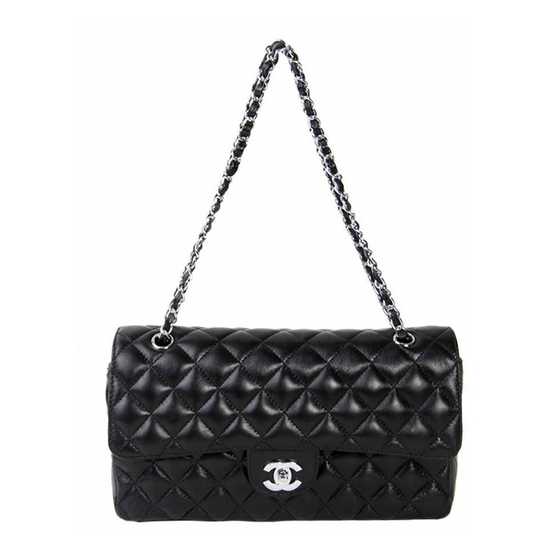 channel signature clasp and interlaced chain strap with heart shaped charms