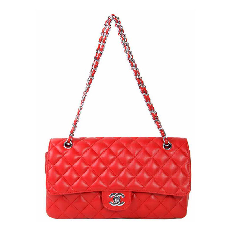 channel signature clasp and interlaced chain strap with heart shaped charms