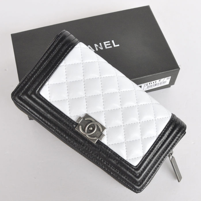 Boy Chanel A360 White Matelasse Zip Around Wallet