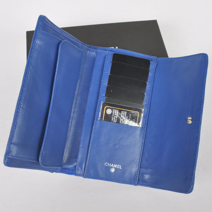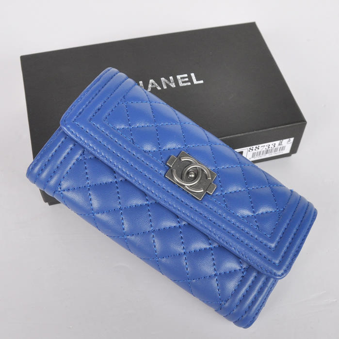 Boy Chanel A88733 Blue Matelasse Long Wallet Silver