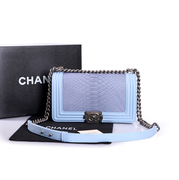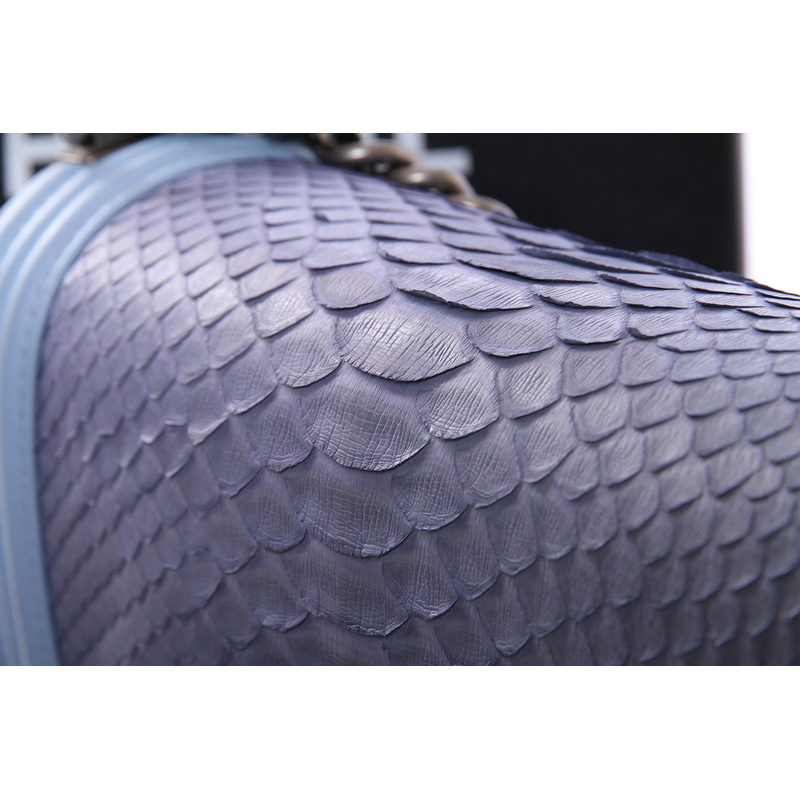 Boy Chanel Flap Shoulder Bag Genuine Python Leather A37003 SkyBlue