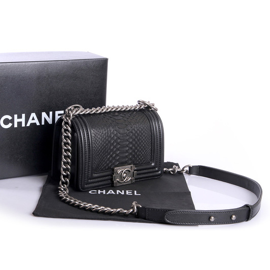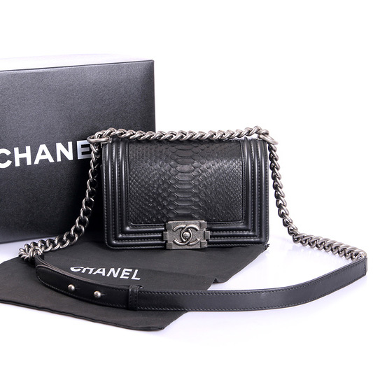 Boy Chanel Flap Shoulder Bag Genuine Python Leather A37006 Black