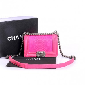 Boy Chanel Flap Shoulder Bag Genuine Python Leather A37006 Rose