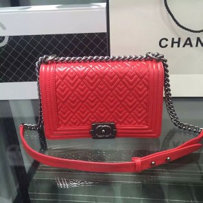 Boy Chanel Flap Shoulder Bag Sheepskin Leather A67086 Red