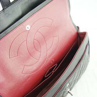 - Double flap closures (one silver CC logo turn lock and one tab snap closure)