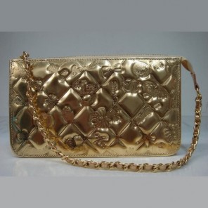 - Zipper clutch in metallized leather embossed with Chanel pattern