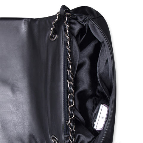 - Pure lambskin leather Front CHANEL logo made with nickle color studs