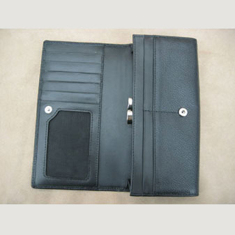 - Black Crafted from Italian workmanship pure cow leather, this handsome long clutch wallet features turned-edge construction