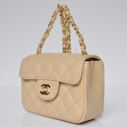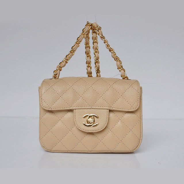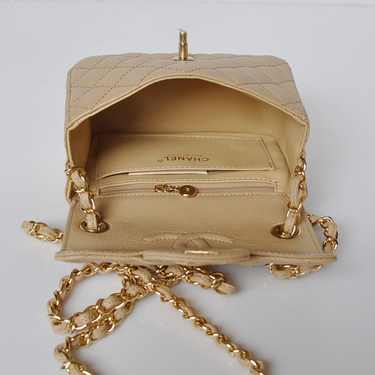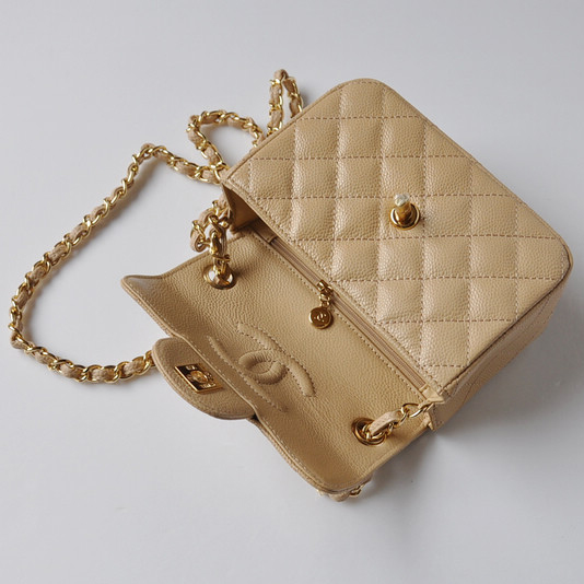 Chanel 1115 mini Classic Flap Bag Caviar Leather Apricot in Gold