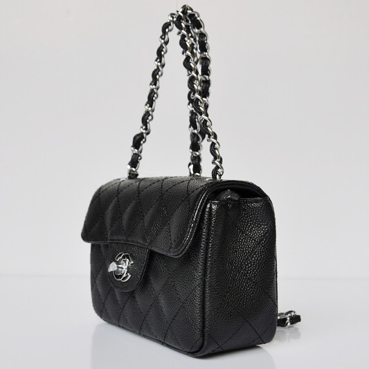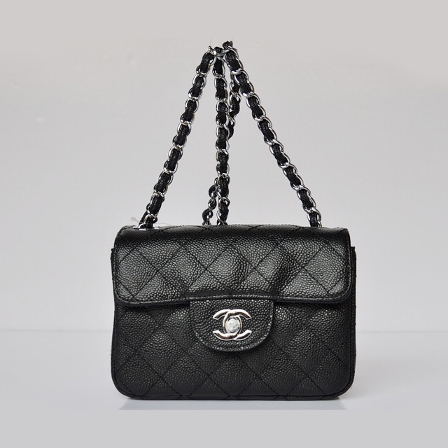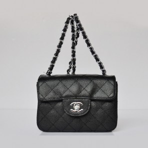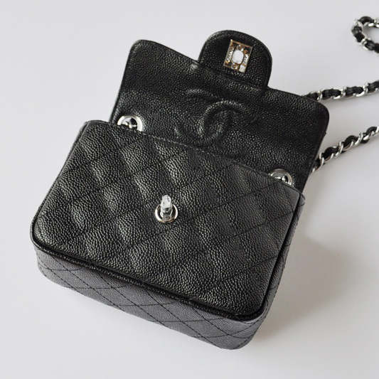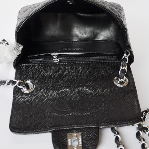 Chanel 1115 mini Classic Flap Bag Caviar Leather Black in Silver
