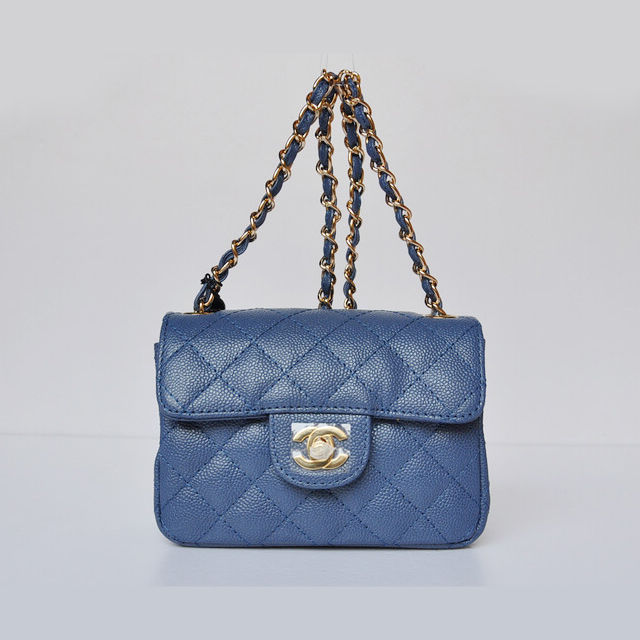Chanel 1115 mini Classic Flap Bag Caviar Leather Blue in Gold