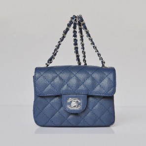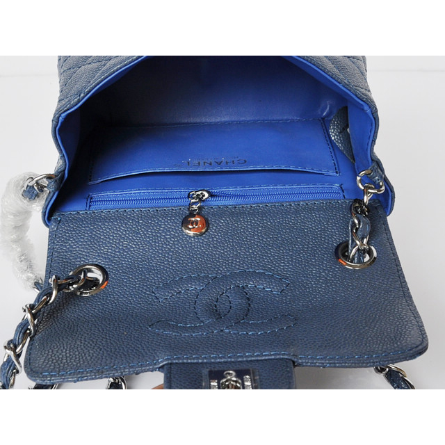 Chanel 1115 mini Classic Flap Bag Caviar Leather Blue in Silver