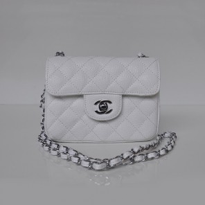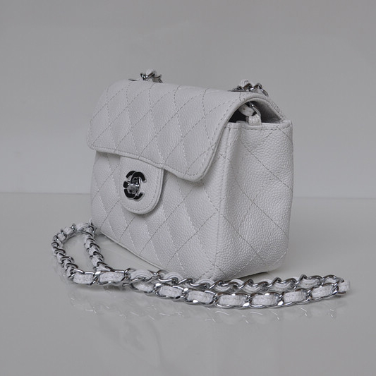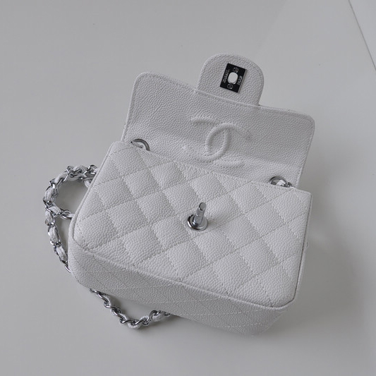 Chanel 1115 mini Classic Flap Bag Caviar Leather white in Silver