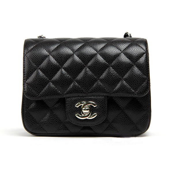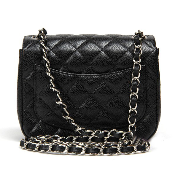 Chanel 1115 mini Classic Flap Bag Original Caviar Leather Black in Silver
