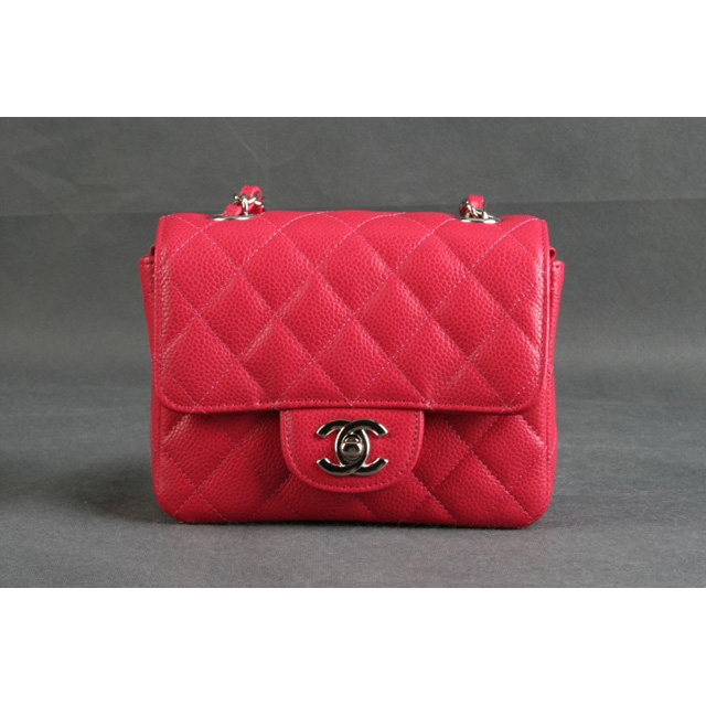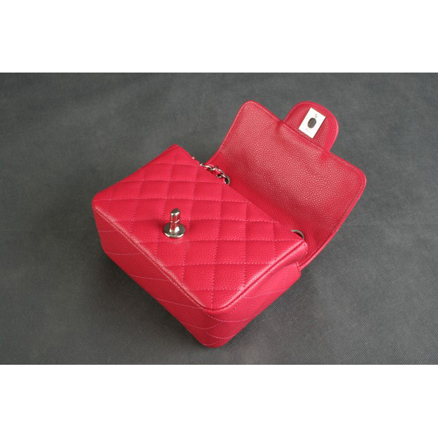Chanel 1115 mini Classic Flap Bag Original Caviar Leather Red in Silver