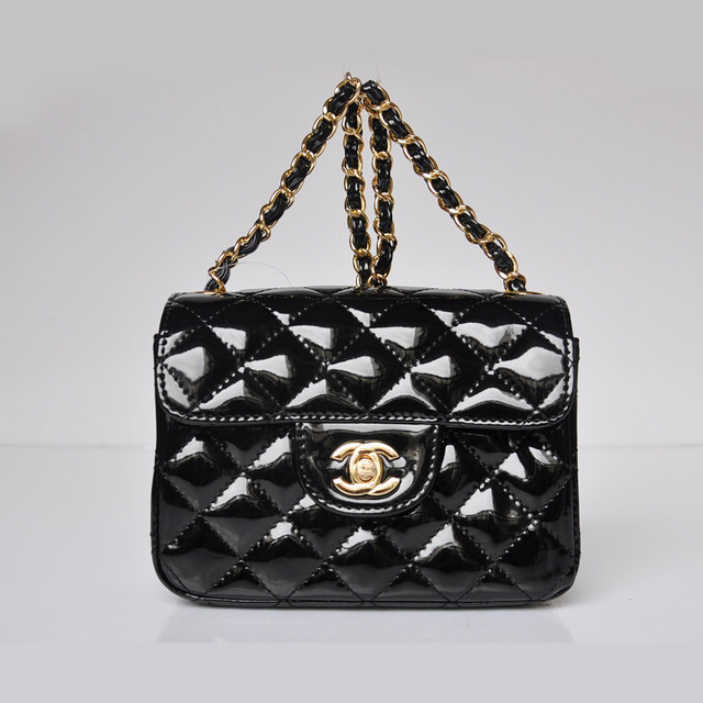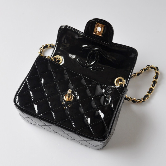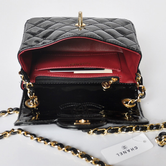 Chanel 1115 mini Classic Flap Bag Patent Leather Black in Gold