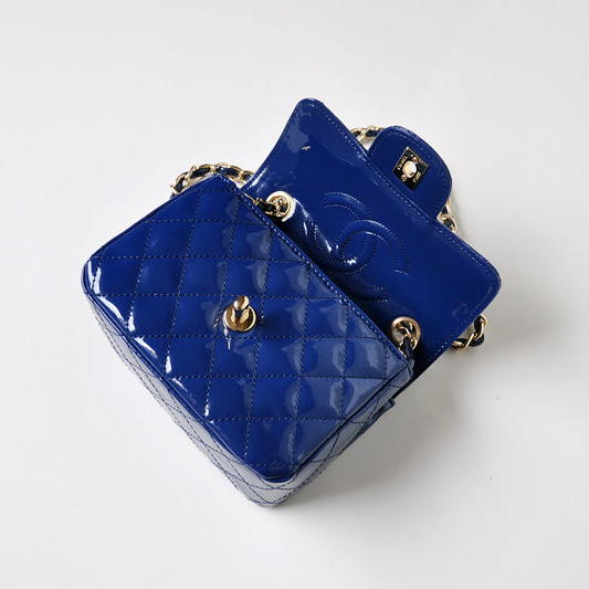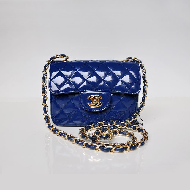 Chanel 1115 mini Classic Flap Bag Patent Leather Blue in Gold