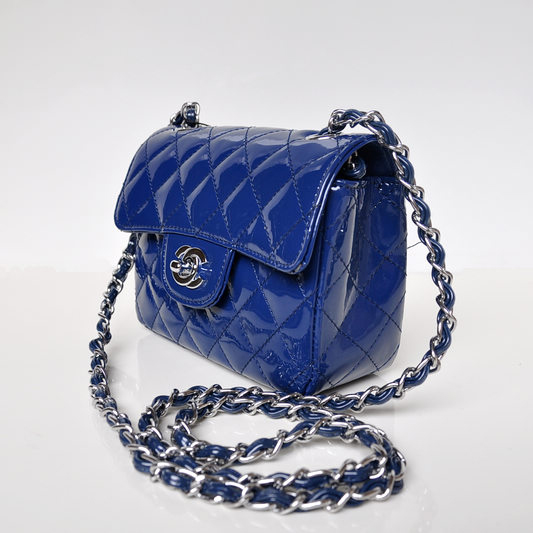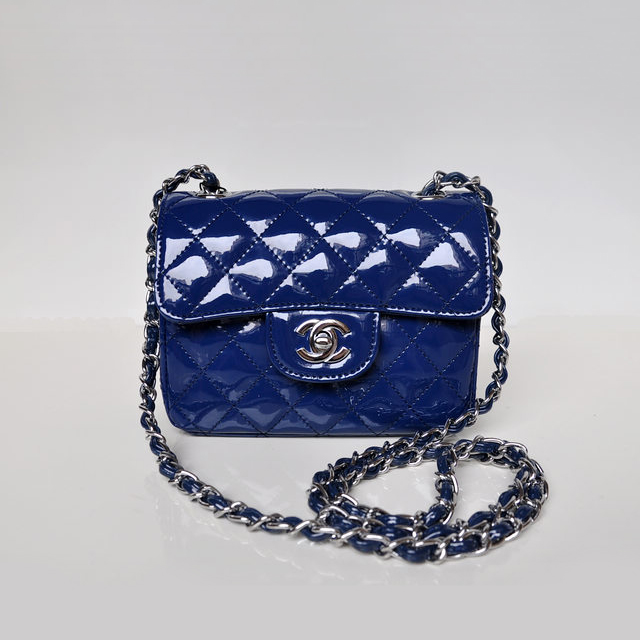 Chanel 1115 mini Classic Flap Bag Patent Leather Blue in Silver